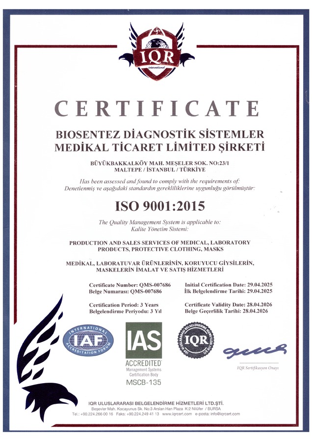 Firmamız İn-vitro Diagnostik alanında Biyokimya-Hormon-Mikrobiyoloji-Kan bankacılığı ve Laboratuvar Hizmet Alımları konularında, öncü ve yenilikçi yaklaşımlarla iş ortaklarına ve müşterilerine geçmişinden aldığı gücü ileriye taşıyama devam edecektir.